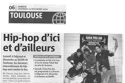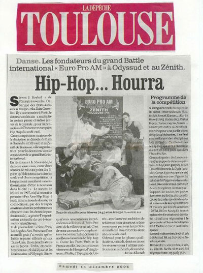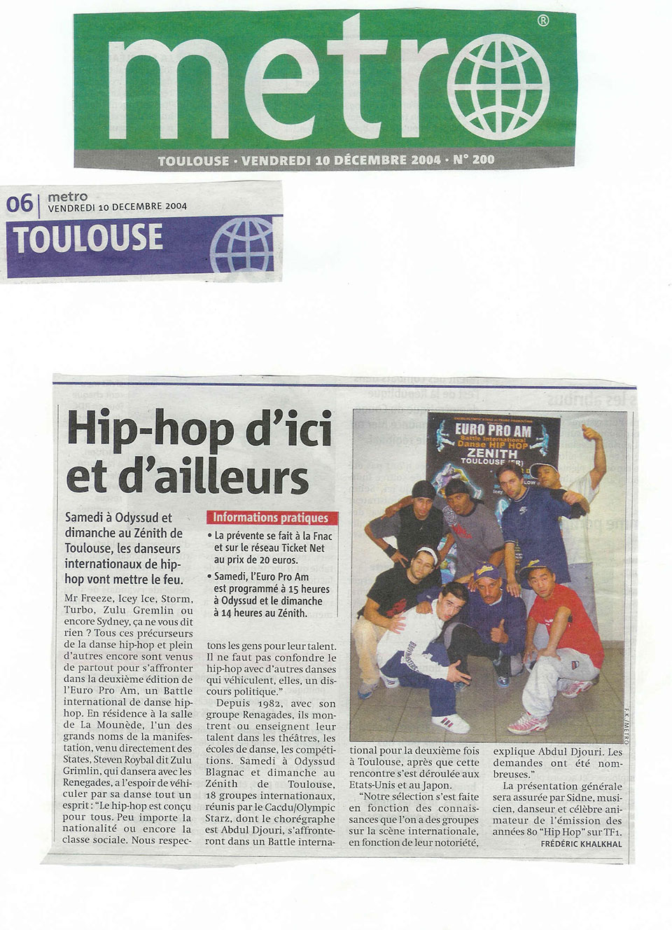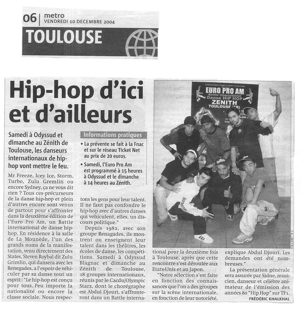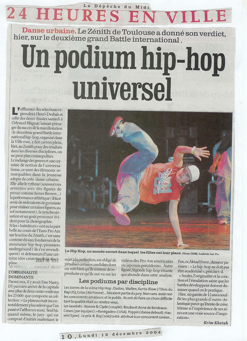Il crée ensuite avec le CACDU, pour la 1ère fois en France, le « Trophée Masters », battle international organisé tous les ans au Zénith de Toulouse, devenu depuis une référence internationale. En 2003, en partenariat avec le B.Boy Master Pro AM de Miami et du Japon, la compagnie Olympic Starz et le CACDU montent « l’EURO PRO AM », un challenge international de danses urbaines au Zénith de Toulouse. Depuis 2006, le CACDU développe des activités pédagogiques, artistiques ou événementielles qui constituent les bases d’un véritable pôle de ressources en danses urbaines.